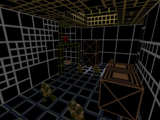 [d1: first camp] A small base map, with uniform and rather ugly texturing and small square rooms. It all pretty basic stuff and there are some major problems in terms of gameplay and map build quality.
