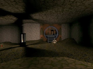 [d7: the Lair] This final base map is a significant improvement over all the previous maps again. Layout, texturing and lighting are much better than in previous installments, in fact they are so much improved it feels like a different map episode than the early maps. The gameplay is better thought out as well, with more of a challenge and better use of enforcers, ogres and vores. This map is pretty much id quality and even more noticeable is the author is beginning to develop his own style of mapping and gameplay, rather than just producing generic bland maps like the earlier levels.