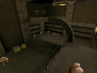 Gameplay is for the most part good, the slightly basic monster layout is enhanced by a relatively slow progression to obtain weapons which makes fighting more fun. The gameplay is broken up and highlighted by some fun quad power-up carnages, often on exiting a wind tunnel. Standard base and medieval monsters are used here, and for the most part the challenge is average if not particularly hard.