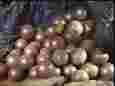 chewed into a paste, patted into form, dyed with blood, then stitched with human hair) we