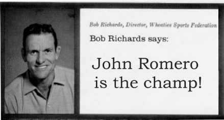 A message from a professional Bob Richards, Director of the Wheaties Sports Federation, lookalike.