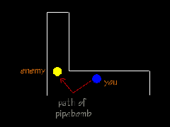hit him. So what do you do? Fire your pipebomb right off the wall nearby. So