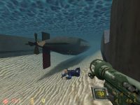 Hunted takes a swim beside the sub. |