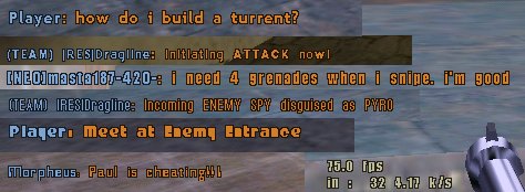 It didn't take too long for high-res players to realize that sometimes even the largest default font is barely legible. It's quite easy to miss important team communication, cries of "h4x", and friendly guesses about one's sexual preferences when your text is too small. Fortunately, Valve was good enough to include the font-making utility, makefont.exe, in their SDK. You can even skip the whole SDK download and grab makefont.exe HERE. It's quite easy to make yourself a bigger font, as well as to make a fonts.wad with any true-type font you would like.