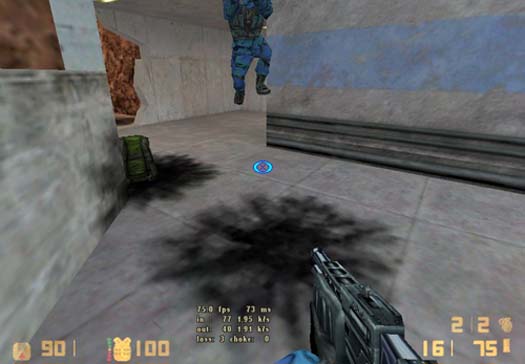 Your HUD, or "heads-up display," is that area at the bottom of your screen that tells you how you're doing in the health, armor, ammo, and gren departments. TF uses the traditional Half-Life HUD, which can get a little old. There are a few reasons why there aren't so many custom HUDs around, though. One reason is the inability to be overwhelmingly colorful in your creations. You have probably noticed that the vast majority of HUD stuff and other informational sprites are the same orangey color. There are a few exceptions, such as red in the health display when you die and a green icon when you lovingly TK your buddies. It turns out that the orange color is hard-coded into the game. The HUD and other display sprites are made up of .spr sprite files and a corresponding text file that tells the game what part of each sprite to use for a particular in-game image. The sprites are created from bitmap images that are grayscale; normally the shade of gray determines the intensity of the usual orangey color. Due to the way the sprites work, it is possible to add a little color to your sprites using shades of green and red. Other colors will not appear normally.